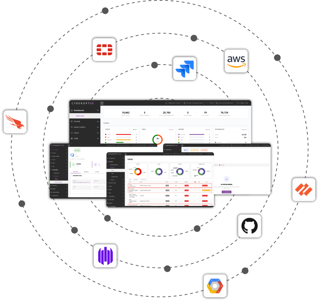 CyberOptix is designed to unify your security operations, not replace everything you already rely on. It integrates directly with the tools your teams use every day, cloud platforms like AWS, development environments like GitHub and Azure DevOps, security tooling like CrowdStrike and Palo Alto, and core infrastructure across your environment, bringing all of that data into one continuous exposure management workflow.