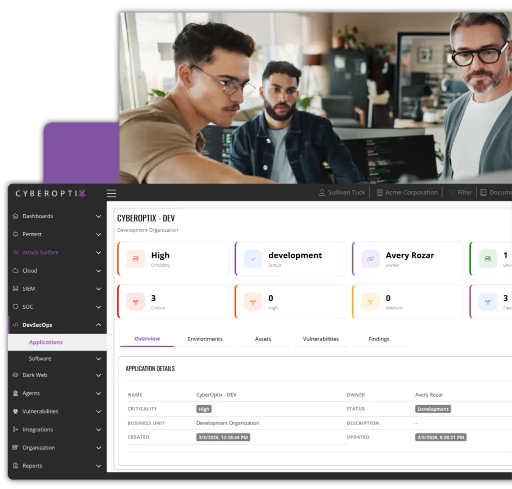 CyberOptix delivers application security as an operational capability, not a point-in-time exercise. These core capabilities work together to continuously identify exploitable risk, prioritize what matters, and help teams remediate issues as part of everyday development.