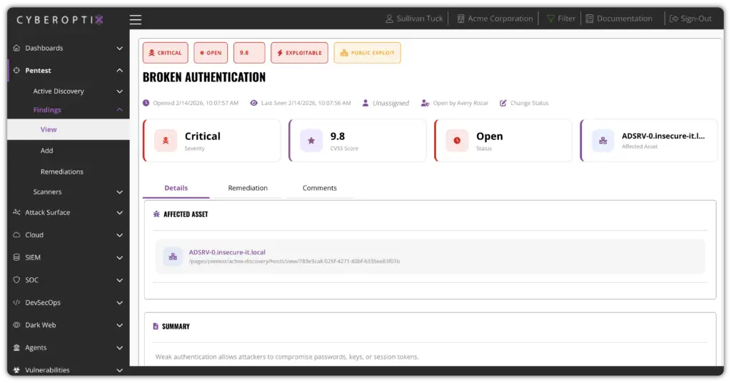 Vulnerabilities are validated for real-world exploitability, prioritized by impact, and routed to the right teams with clear ownership and remediation context.